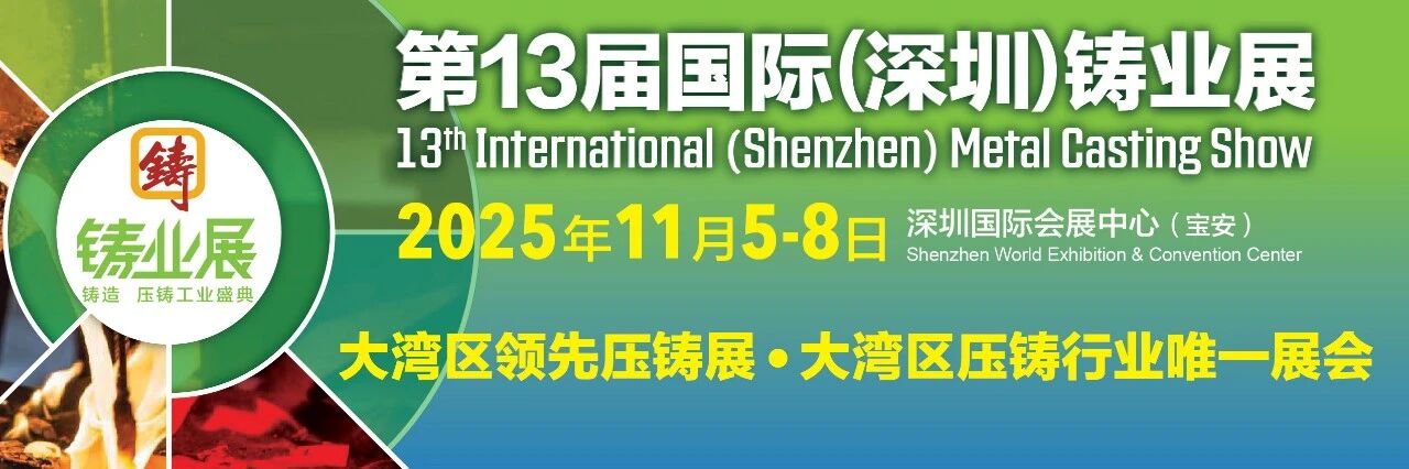 第 13 屆國際(深圳)鑄業展將于2025年11 月 5 日至 8 日在深圳國際會展中心同期舉辦。